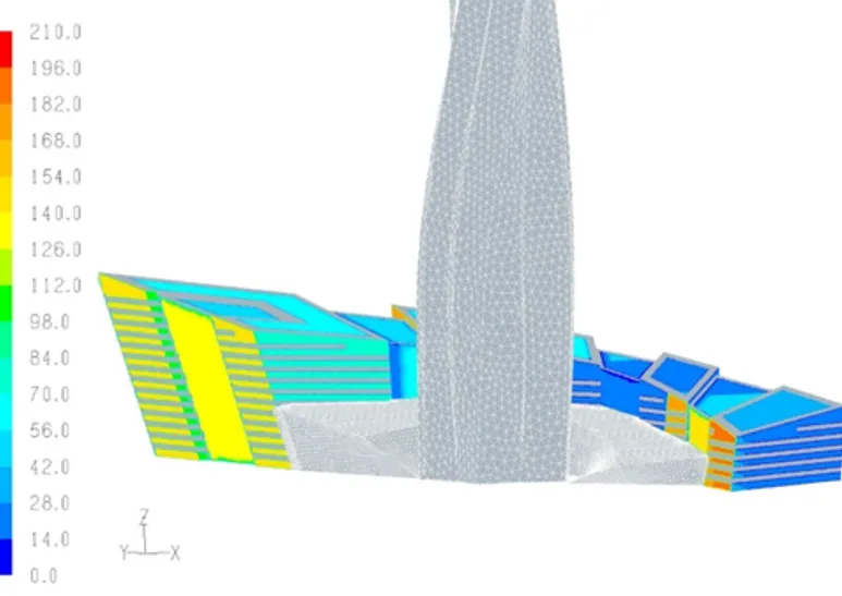 Проведен расчет теплопоступление от солнечной радиации для различного времени суток (с 6 до 22 по местному времени). Построен график изменения теплопоступлений в течении дня, определены максимальные значения. Было выявлено, что запроектированное решение в части системы кондиционирования воздуха – балки – является не только не эффективным, что показано в ходе проведения математического моделирования, но и капиталоемкими. Наиболее разумно использовать холодный воздухо-воздушный потолок (ХВВП). В результате полученные значения теплопоступлений способствовали корректировке мощностей закладываемого оборудования. Так по закону Стефана-Больцмана должна была повыситься теплоотдача поверхности, то есть теплообмен будет идти интенсивней. Очевидны и функциональные качества данного решения, на математических моделях температурных полей мы видим равномерное распределение температур.